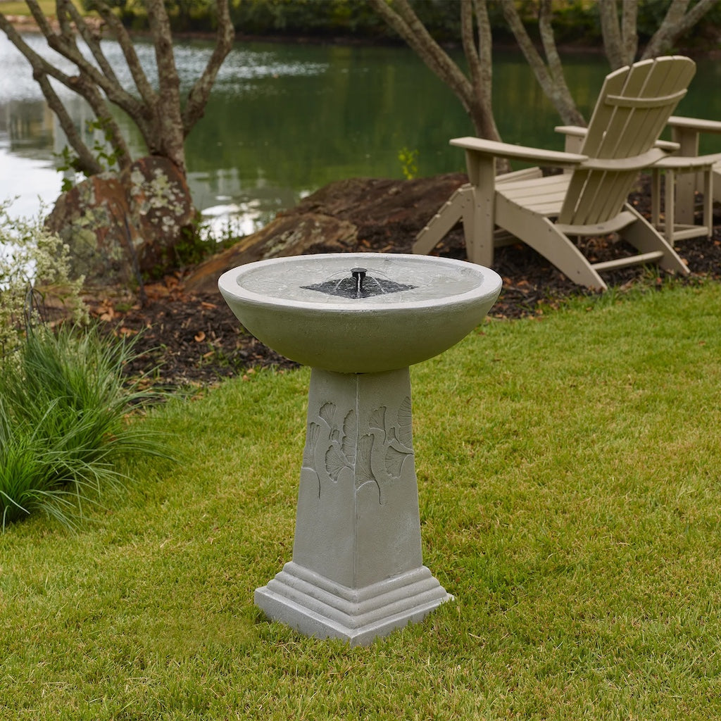Gingko Birdbath Fountain with Remote in Weathered Stone